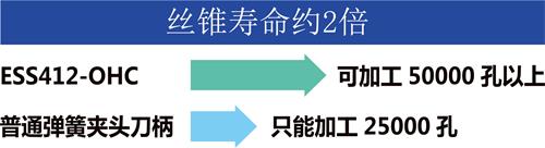 ·ESS412-OHC刀柄攻絲時,使用尾部帶方孔的AR-GH·AR-GB絲錐夾套,調整工具長度方便,簡單。